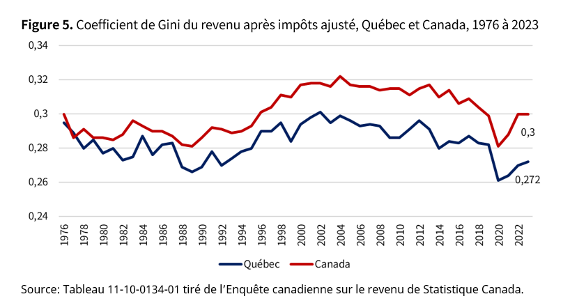 • Les inégalités de revenu se sont ainsi accentuées depuis 2020, atteignant un sommet historique à l’échelle canadienne.